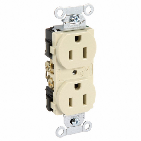 HUBBELL - BRYANT CBRS15I Receptacle, Duplex, 5-15R, 15 A, 125V AC, Ivory, 2 Poles, Screw Terminals, Std Resist