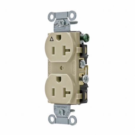 HUBBELL - BRYANT CR20IGI Receptacle, Duplex, 5-20R, 15 A, 125V AC, Ivory, 2 Poles, Screw Terminals, Std Resist