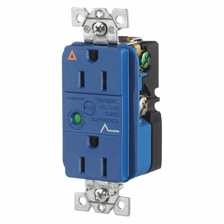 GRAINGER SP52IGA Receptacle, Duplex, 5-15R, 15 A, 125V AC, Blue, 2 Poles, Screw Terminals, Std Resist | CP8XUX 52HE22
