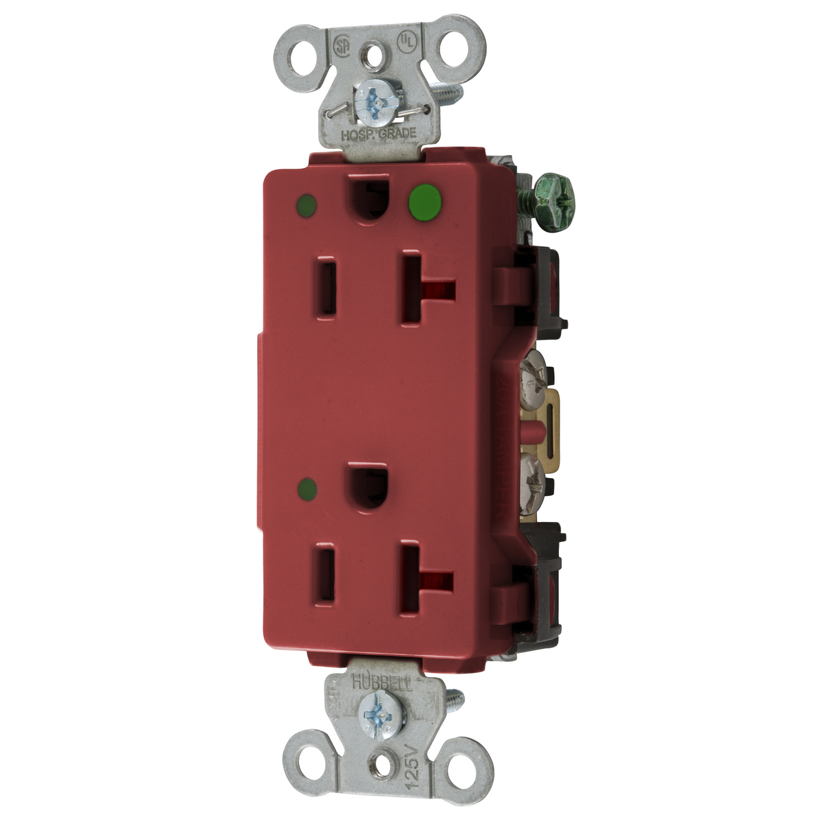 HUBBELL WIRING DEVICE-KELLEMS 2182REDL Decorator Duplex Receptacle, Led Indicator, 20A, 125V, 2-Pole, Red