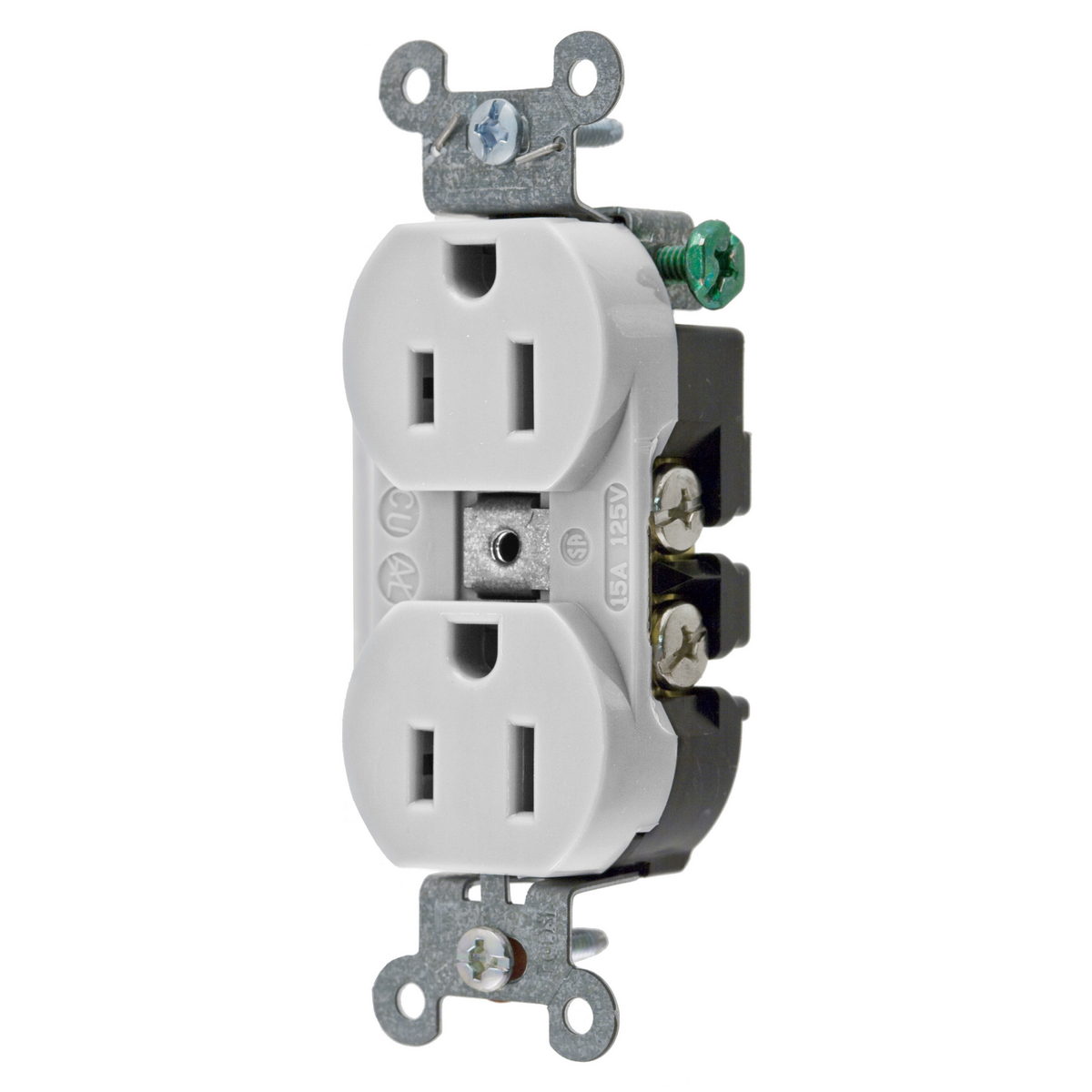 HUBBELL WIRING DEVICE-KELLEMS 5252AOW Straight Receptacle, Duplex, 15A 125V, Office White