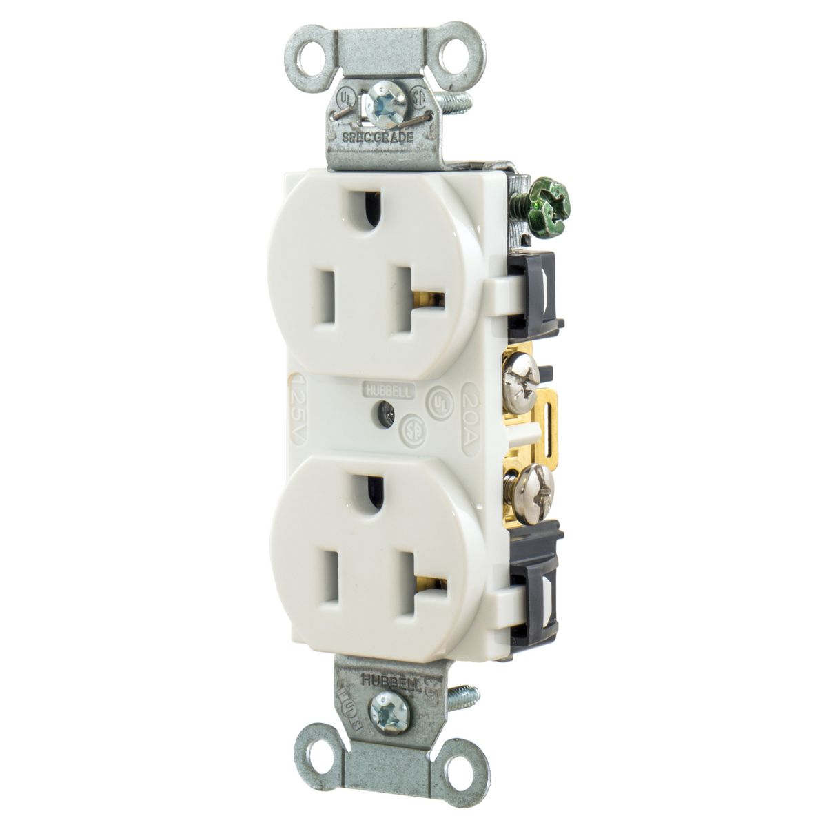 HUBBELL WIRING DEVICE-KELLEMS 5352AW Straight Receptacle, Duplex, 20A 125V, White
