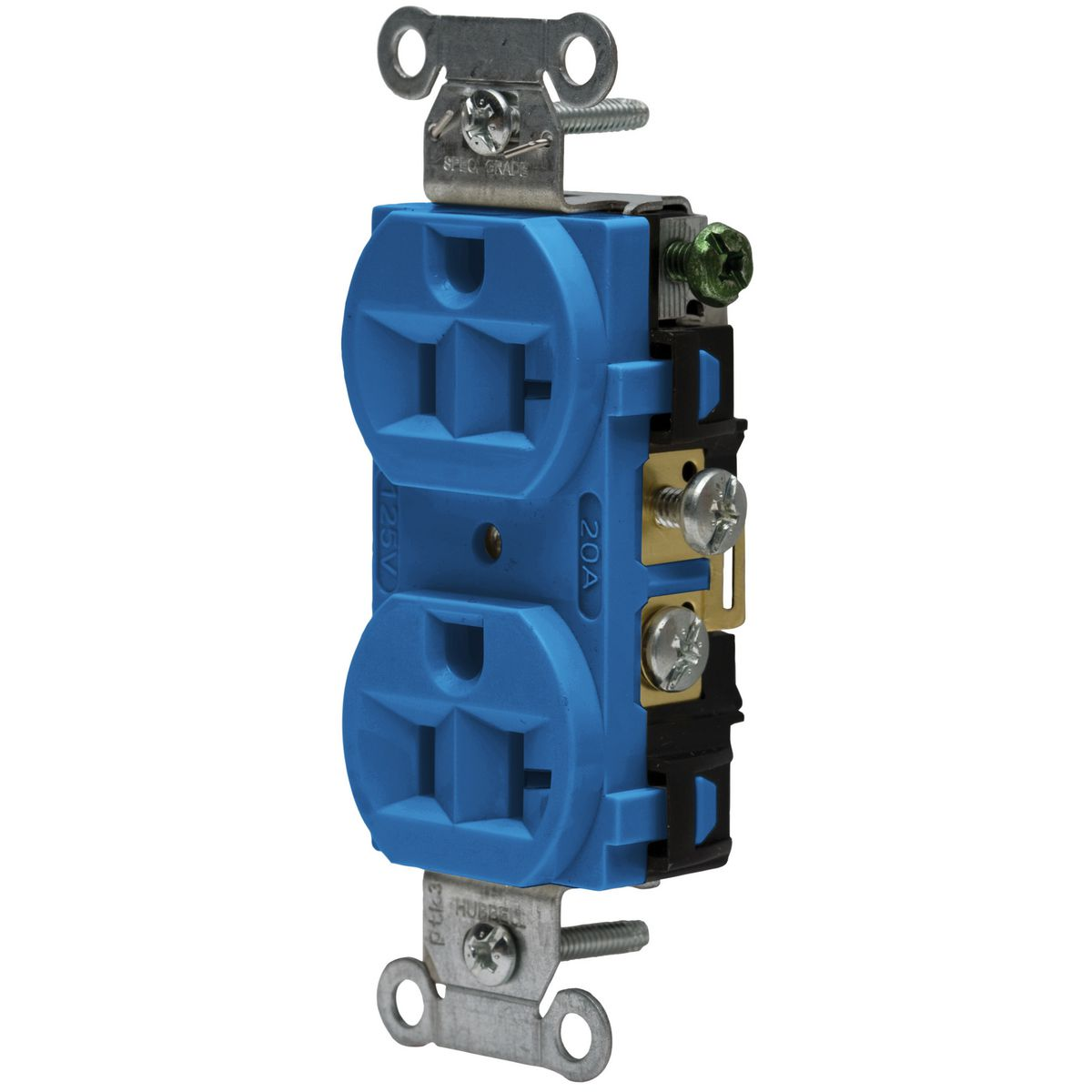 HUBBELL WIRING DEVICE-KELLEMS 5362ABL Straight Receptacle, Duplex, 20A 125V, Blue