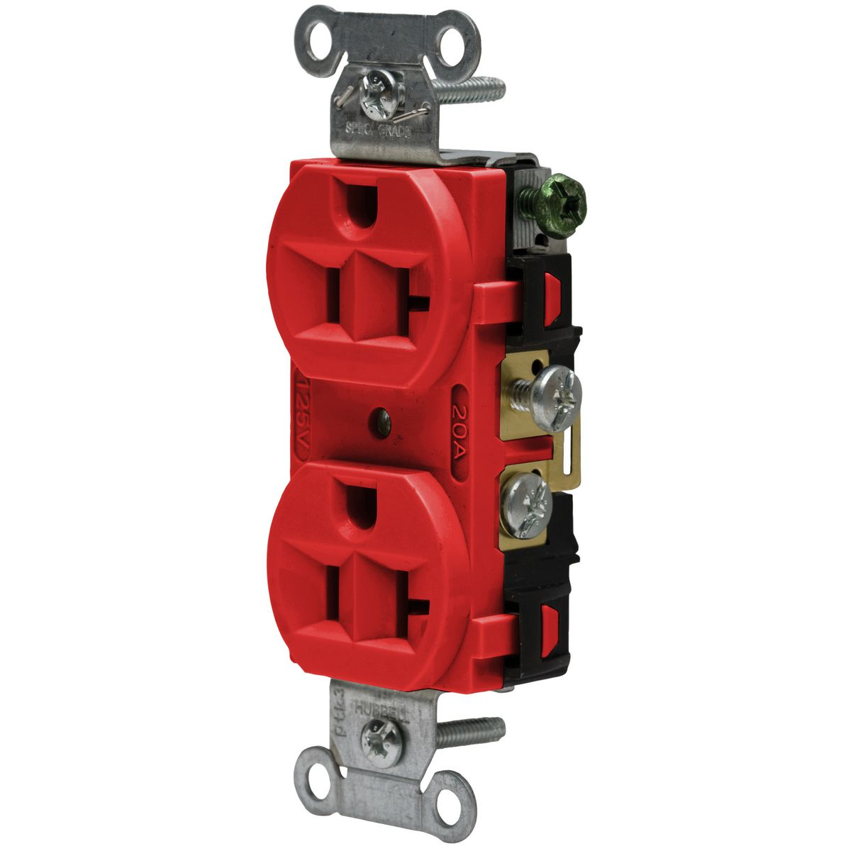 HUBBELL WIRING DEVICE-KELLEMS 5362AR Straight Receptacle, Duplex, 20A 125V, Red