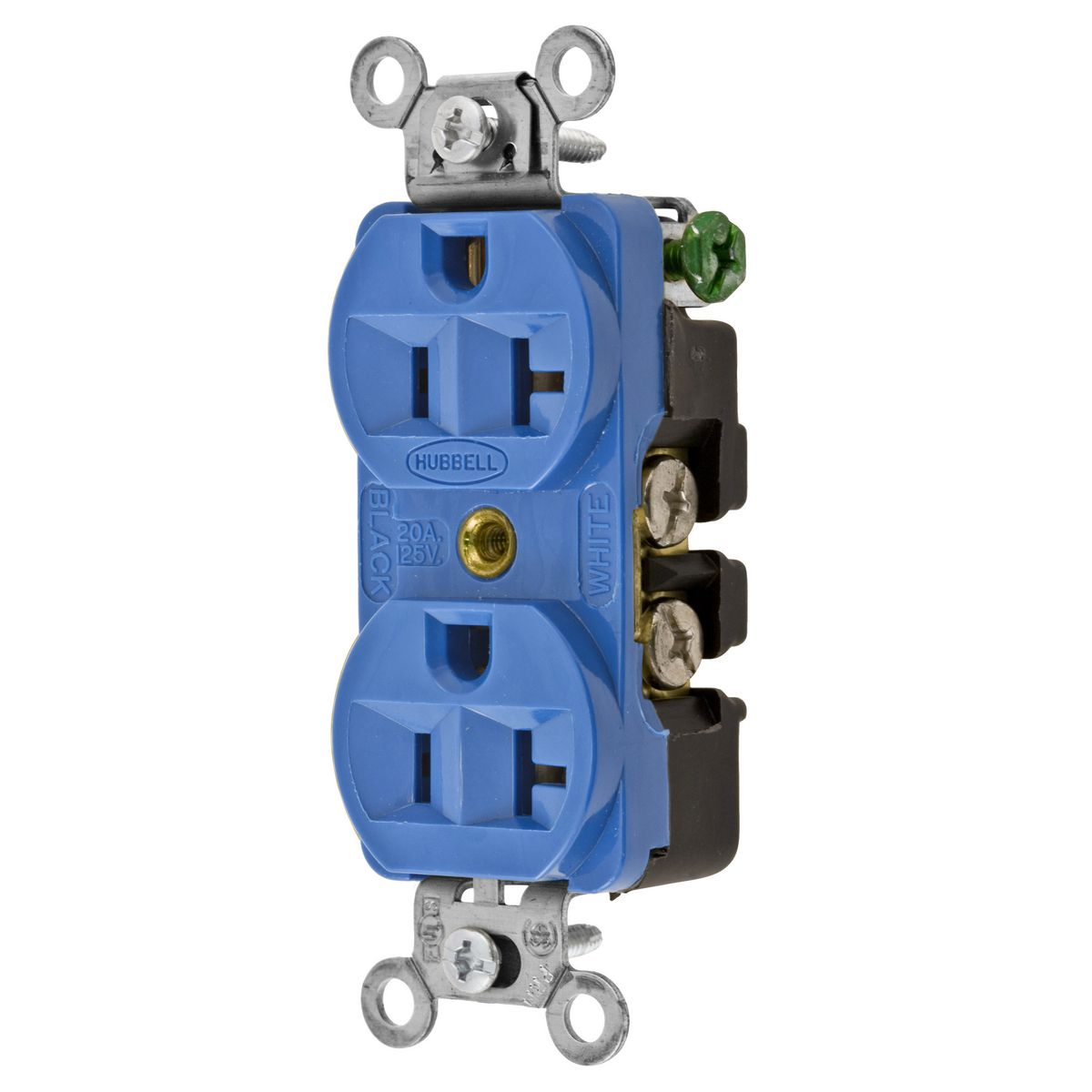 HUBBELL WIRING DEVICE-KELLEMS 5362BL Straight Receptacle, Duplex, 20A 125V, Blue