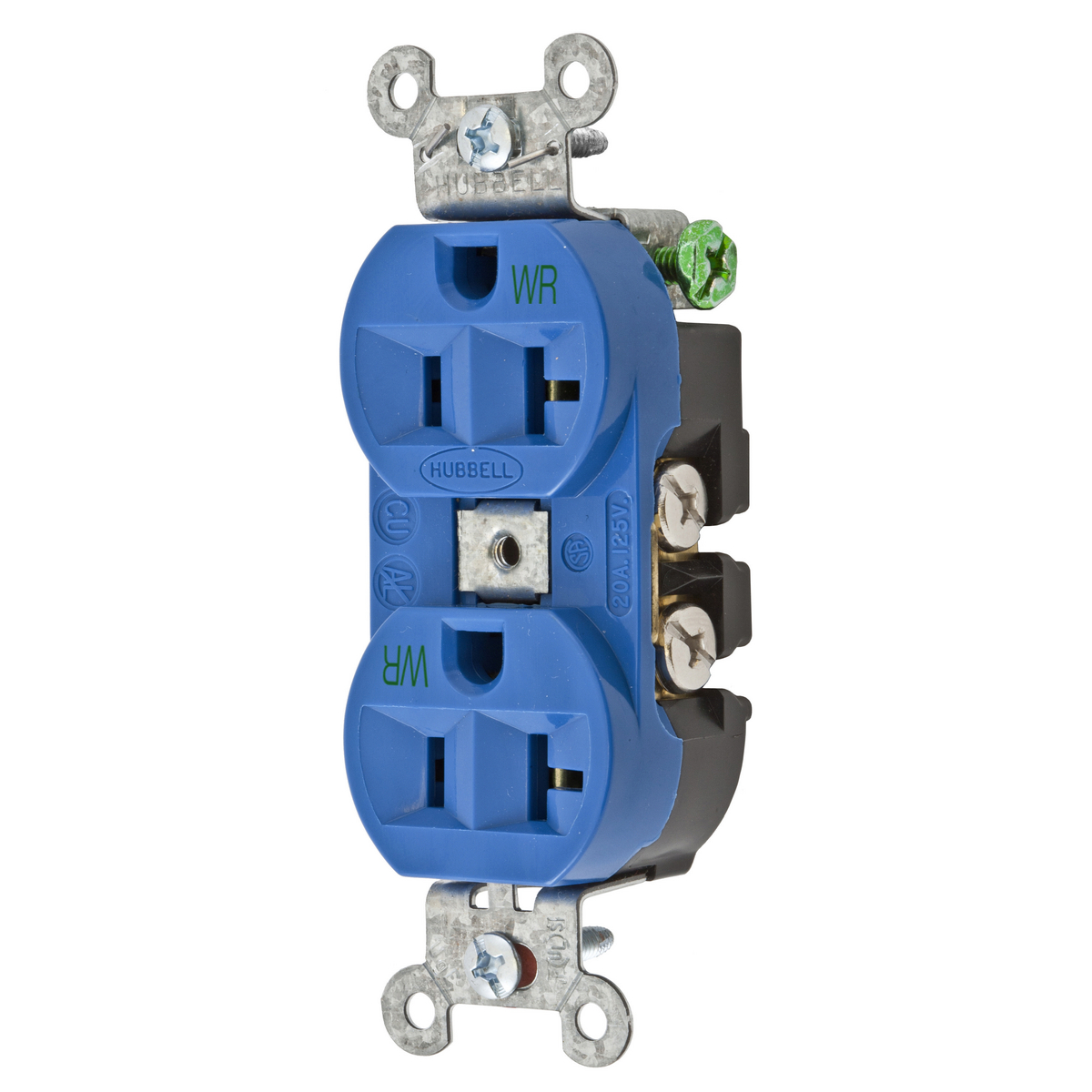 HUBBELL WIRING DEVICE-KELLEMS 5362BLWR Straight Receptacle, Duplex, 15A 125V, Blue