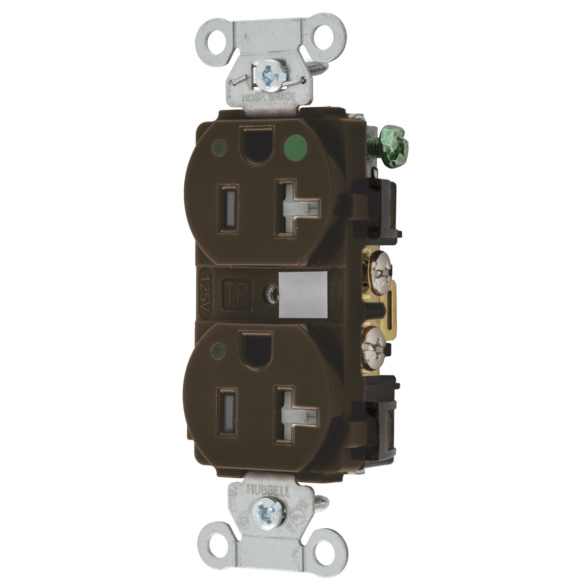 HUBBELL WIRING DEVICE-KELLEMS 8300LTRA Straight Blade Devices, Tamper Resistant Duplex Receptacle, Hospital Grade, Hubbell-Pro, LED Indicator, 20A 125V, 2-Pole 3-Wire Grounding, 5-20R