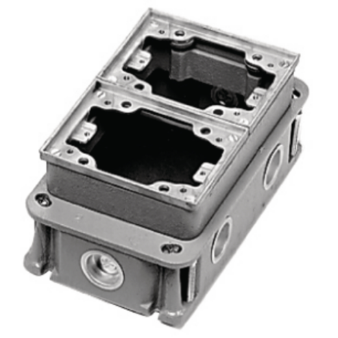 HUBBELL WIRING DEVICE-KELLEMS BA423341 2-Gang, Rectangular, Cast Iron Box, Deep, Fully Adjustable, Aluminum Top