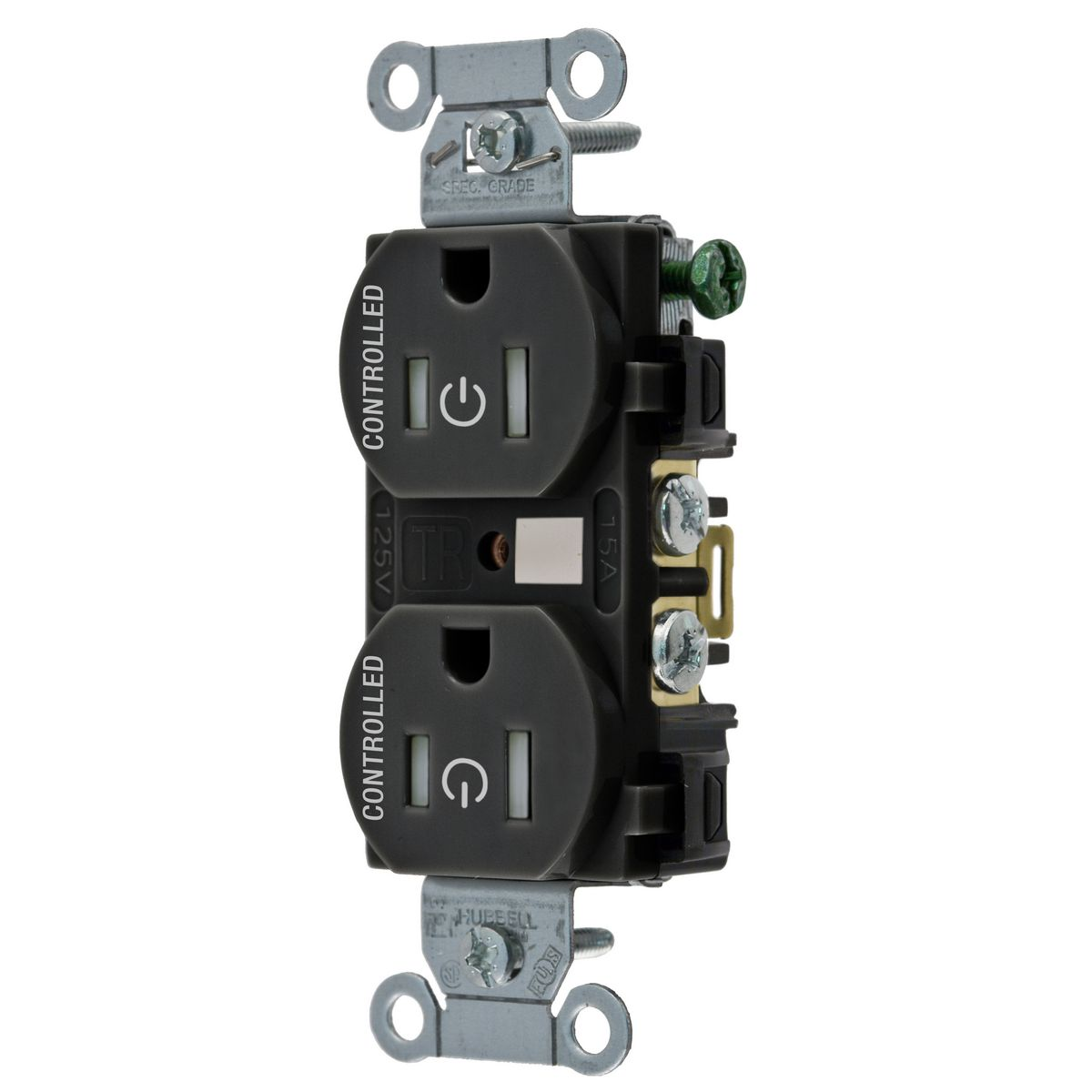 HUBBELL WIRING DEVICE-KELLEMS BR15C2BLKTR Straight Receptacle, 15A 125V, 2P - 3W Grounding, 5-15R, Black
