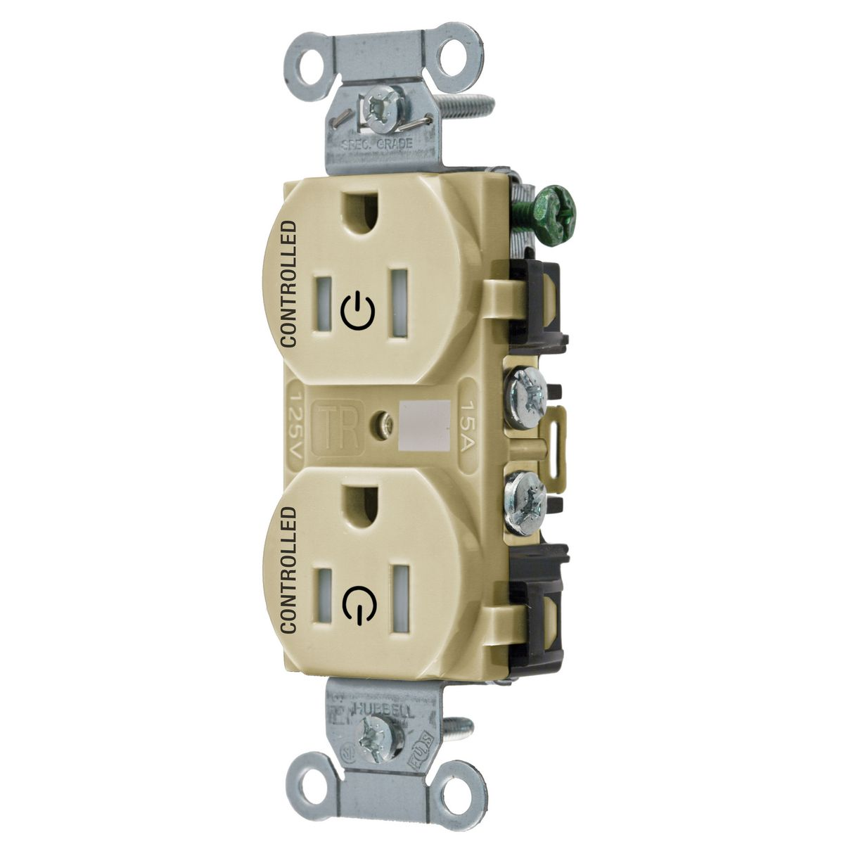 HUBBELL WIRING DEVICE-KELLEMS BR15C2ITR Straight Receptacle, 15A 125V, 2P - 3W Grounding, 5-15R, Ivory