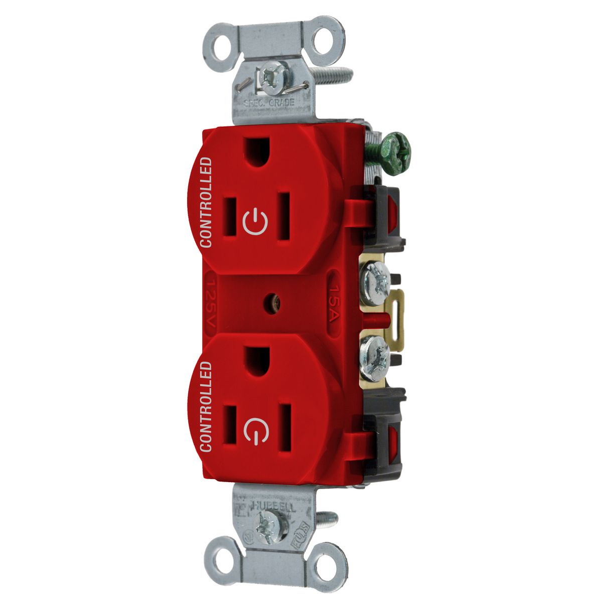 HUBBELL WIRING DEVICE-KELLEMS BR15C2R Straight Receptacle, 15A 125V, 2P - 3W Grounding, 5-15R, Red