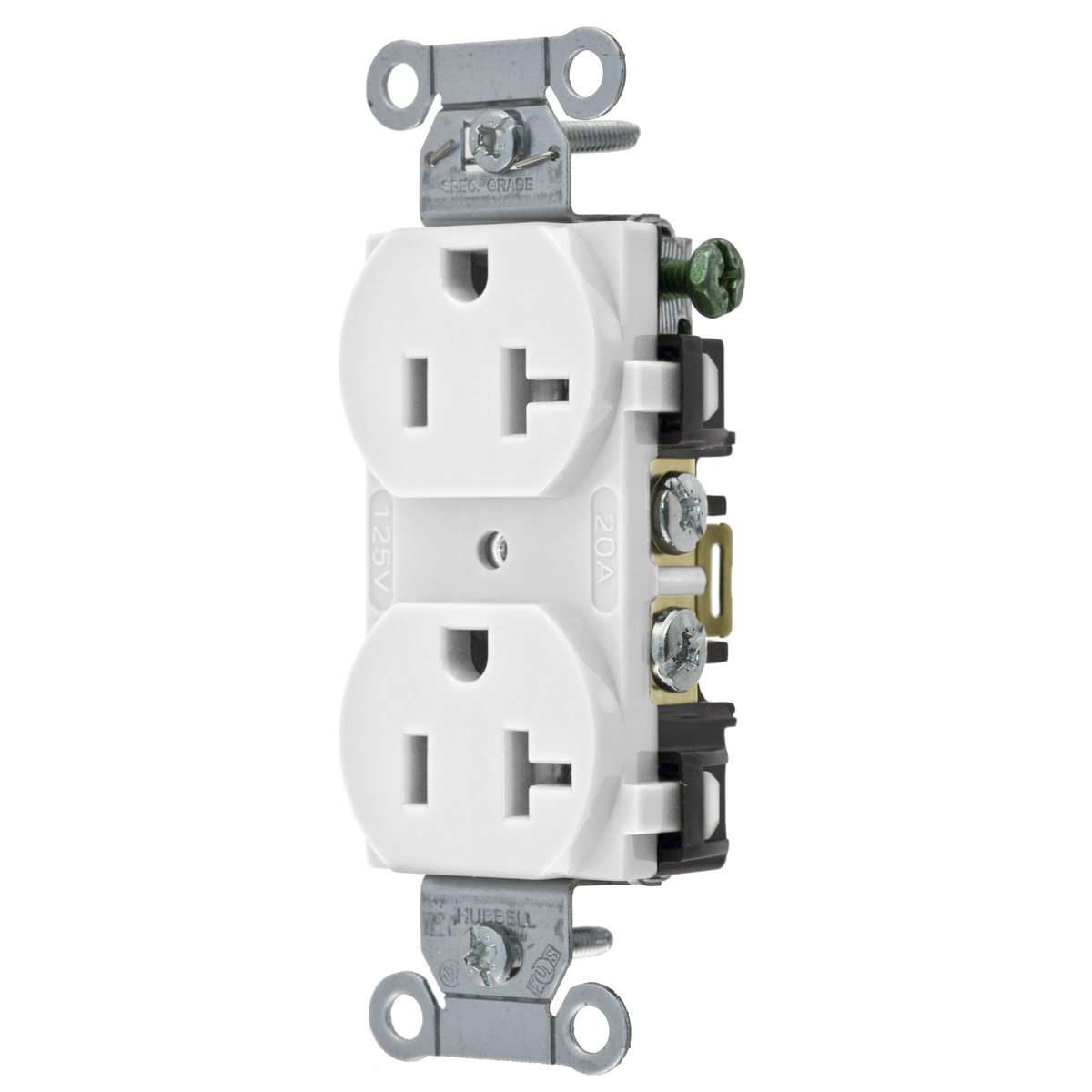 HUBBELL WIRING DEVICE-KELLEMS BR20WHI Straight Receptacle, Duplex, 20A 125V, White