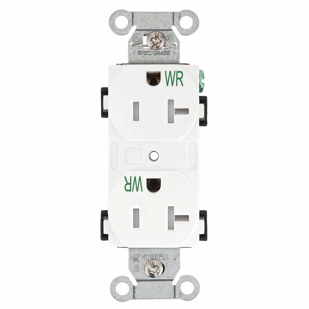 HUBBELL WIRING DEVICE-KELLEMS BR20WHIWRTR Straight Receptacle, Duplex, 20A 125V, White