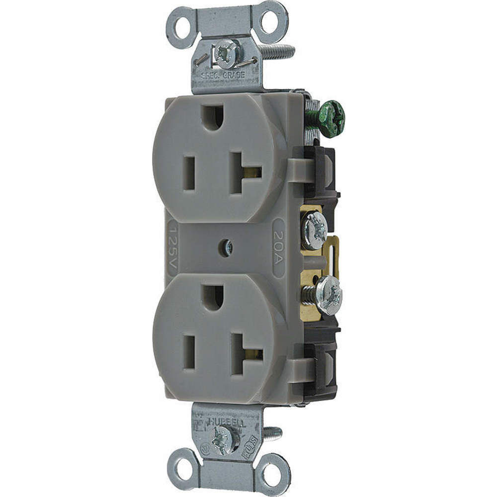 HUBBELL WIRING DEVICE-KELLEMS CR20GRY Straight Receptacle, Duplex, 20A 125V, Gray