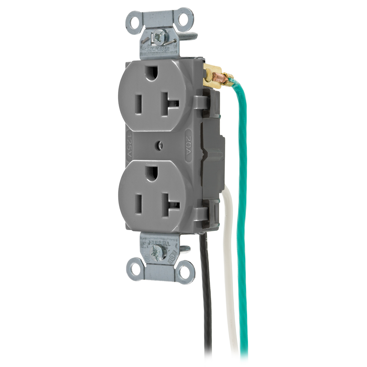 HUBBELL WIRING DEVICE-KELLEMS CR20GRYP2 Straight Receptacle, Duplex, 20A 125V, Gray, 8 Inch Stranded Lead