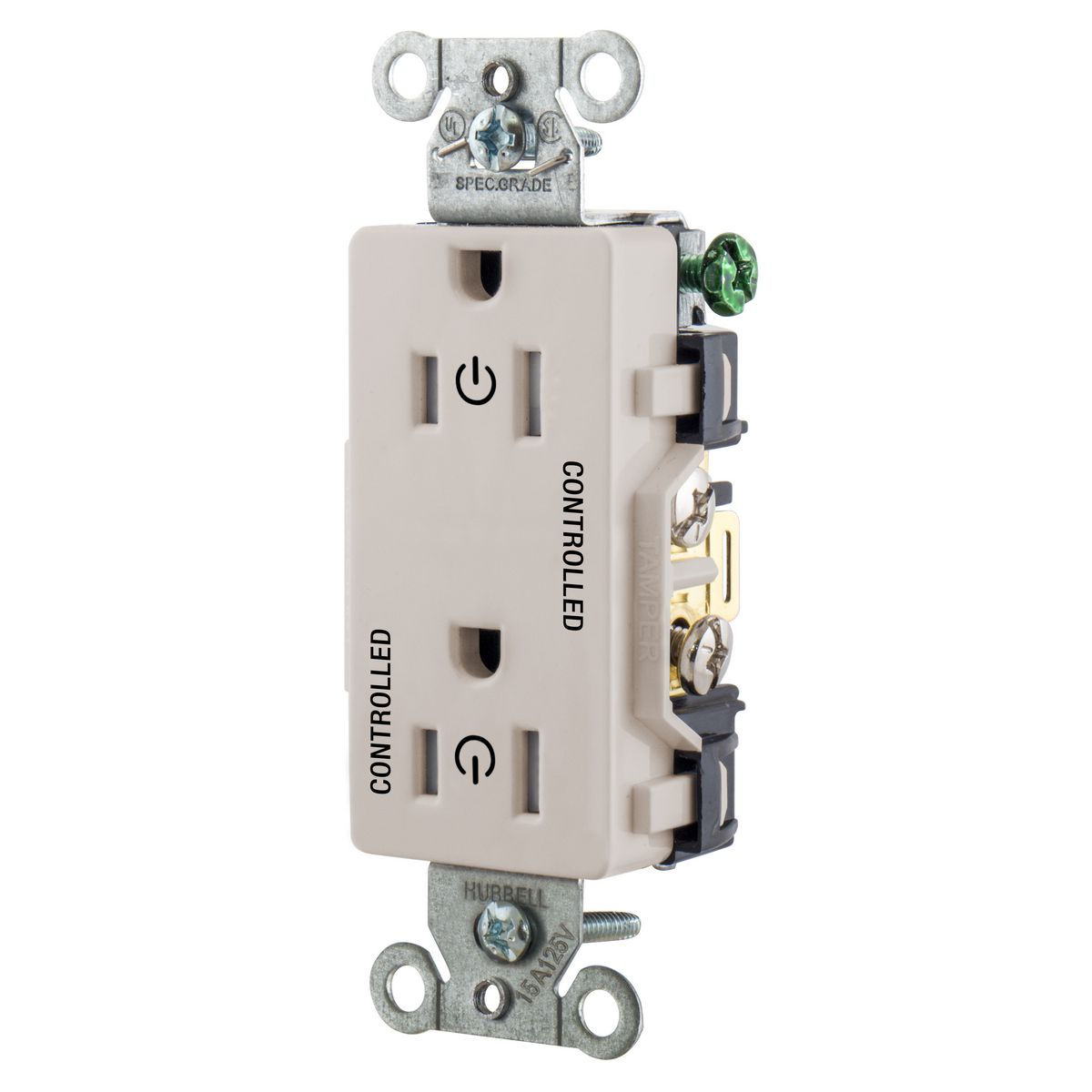 HUBBELL WIRING DEVICE-KELLEMS DR15C2LATR Straight Receptacle, 15A 125V, 2P - 3W Grounding, 5- 15R, Light Almond
