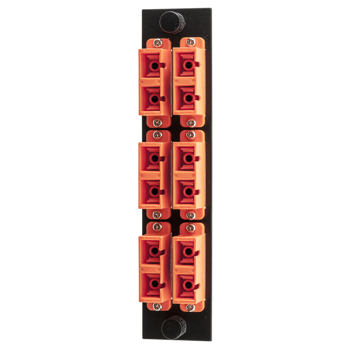 HUBBELL WIRING DEVICE-KELLEMS FSPSCDS6OR Fiber Optic Panel Adapter, 12-Fiber, 6 Sc Duplex, Zircon Sleeve, Orange