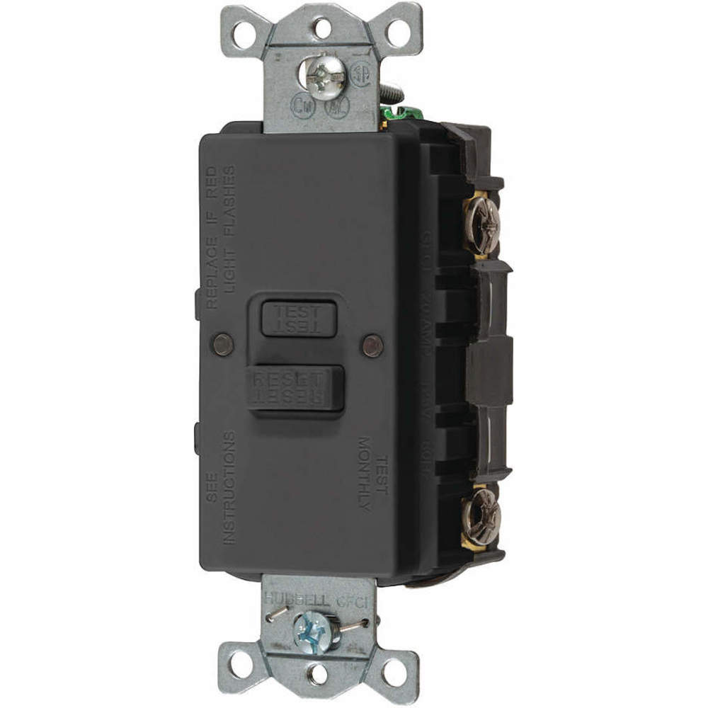 HUBBELL WIRING DEVICE-KELLEMS GFBF20BK Gfci Receptacle, 20A 125V, 2-Pole 3-Wire Grounding, Black