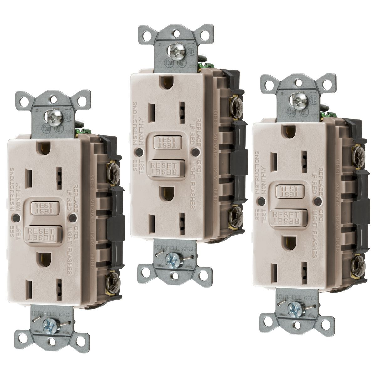 HUBBELL WIRING DEVICE-KELLEMS GFRST15LA3 Gfci Receptacle, 15A 125V, 2-P 3-W Grounding, 5-15R, Light Almond
