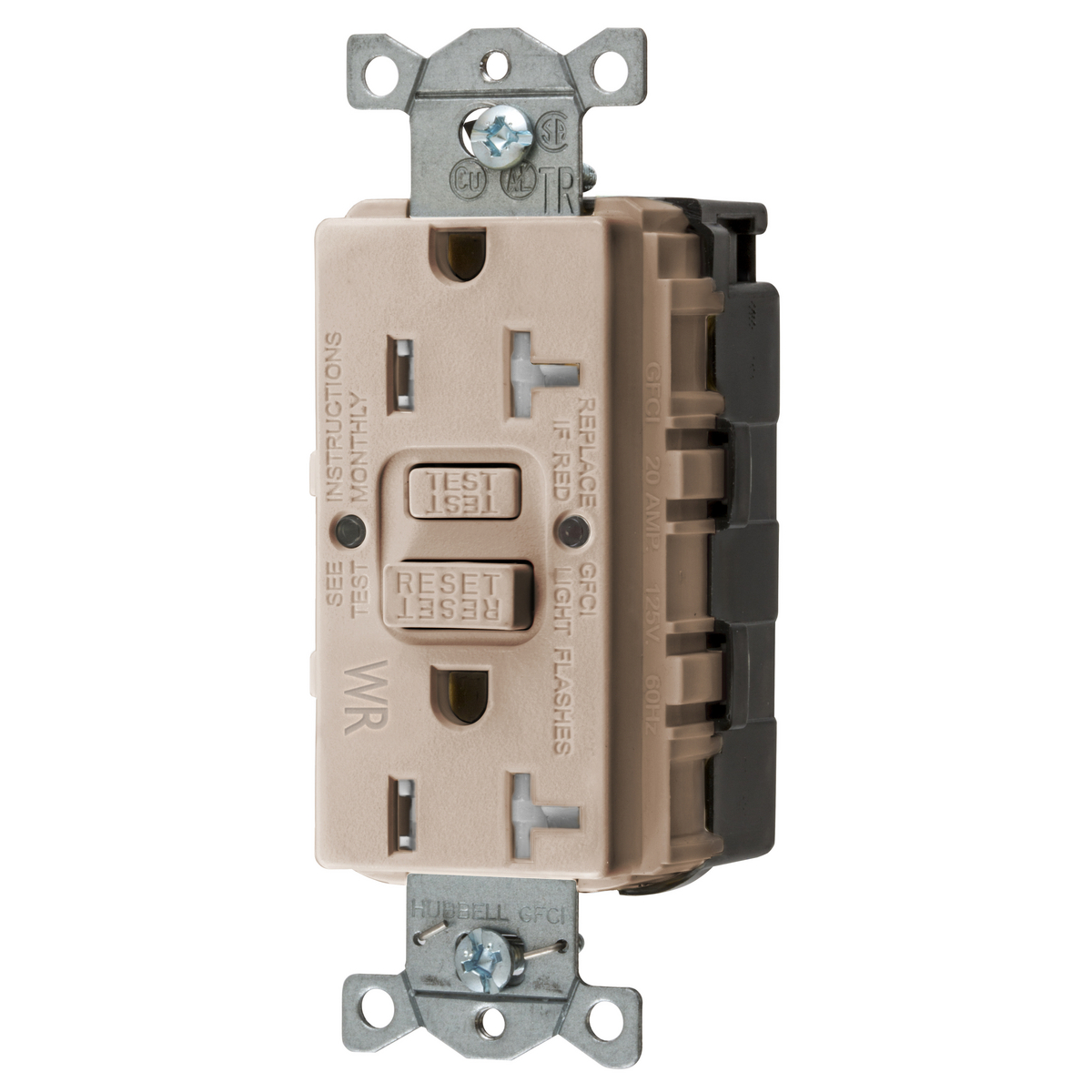 HUBBELL WIRING DEVICE-KELLEMS GFTWRST20SNAPAL Gfci Receptacle 20A, Self Test, Almond