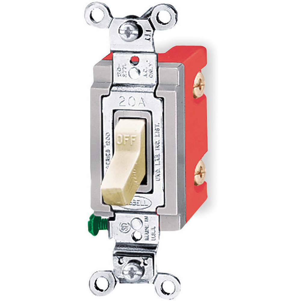 HUBBELL WIRING DEVICE-KELLEMS HBL1221I Toggle Switch, Single Pole, 20A, 120/277VAC, Ivory