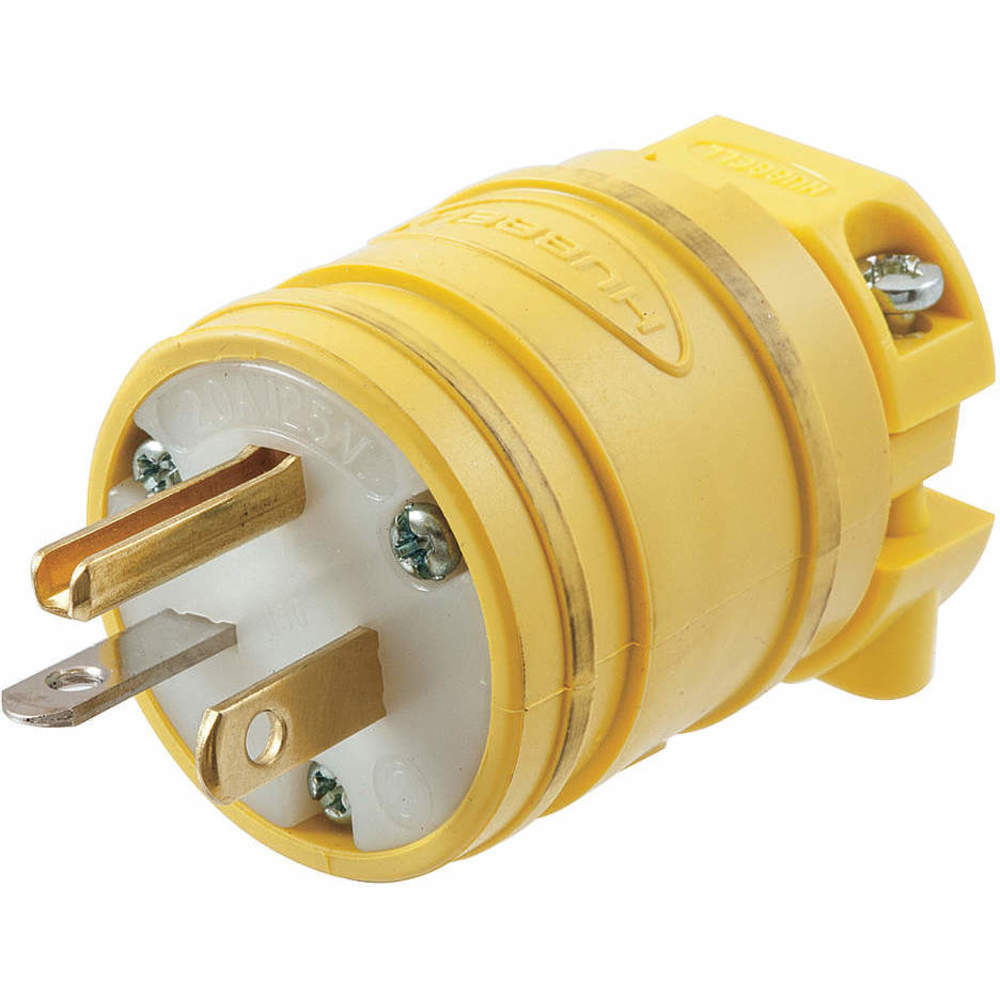 HUBBELL WIRING DEVICE-KELLEMS HBL1433 Dust Tight Plug, Industrial Grade, 20A 125V, 5-20P, Yellow