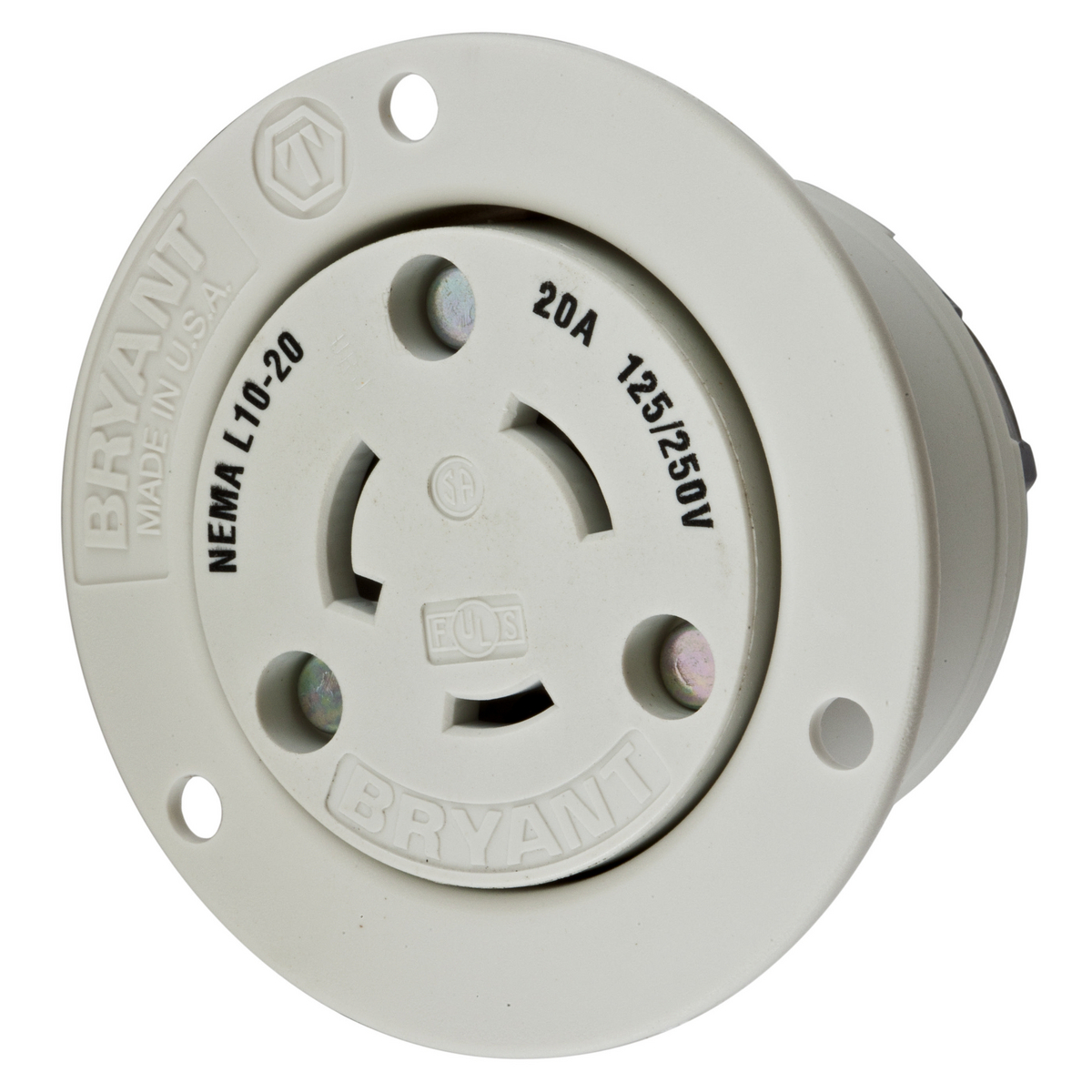 HUBBELL WIRING DEVICE-KELLEMS HBL2366 Flanged Receptacle, 20A, 125/250V, 3-Pole, 3-Wire Non-Grounding