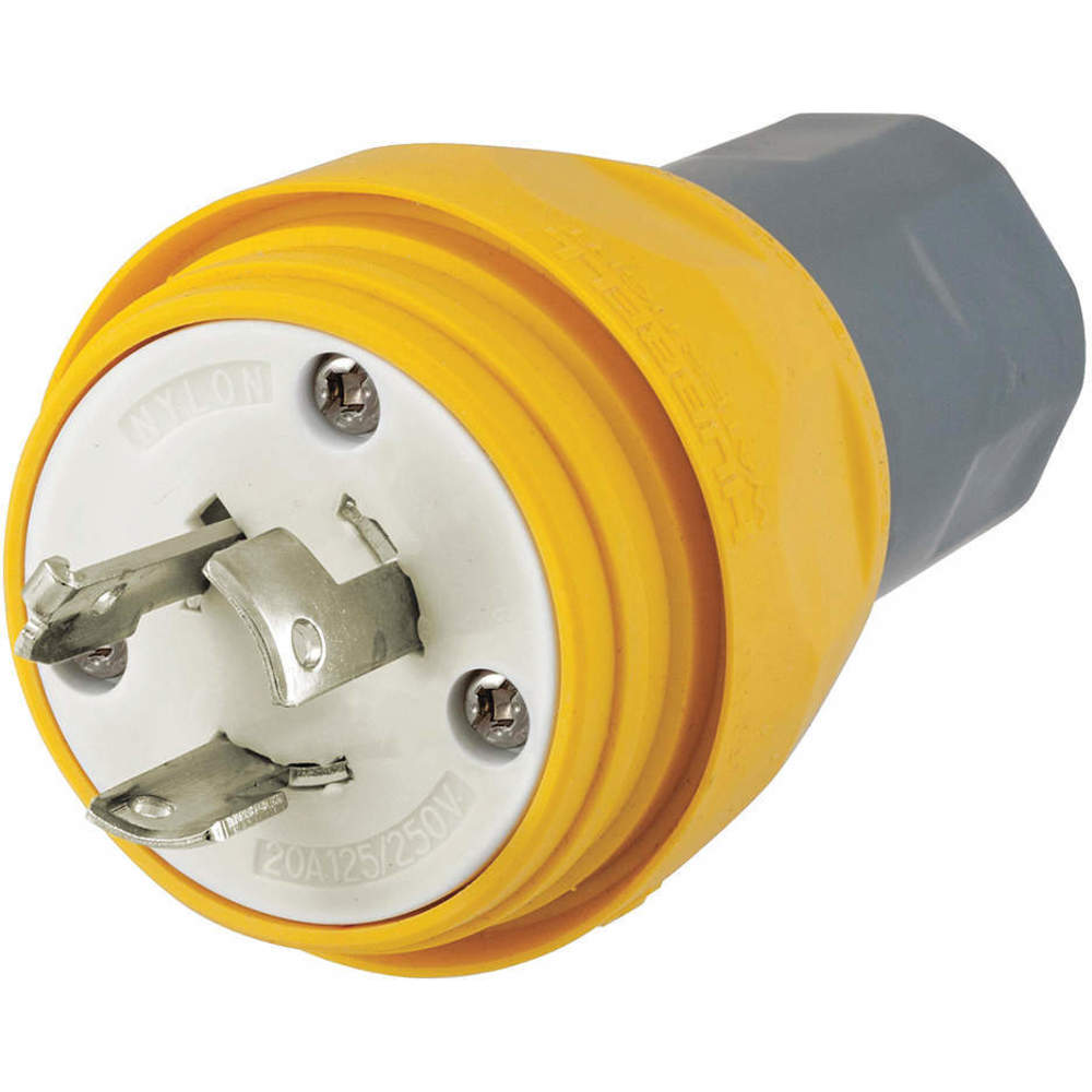 HUBBELL WIRING DEVICE-KELLEMS HBL26W08 Plug, 20A, 125/250VAC, 3 Pole, 3 Wire, Thermoplastic Elastomer, Yellow