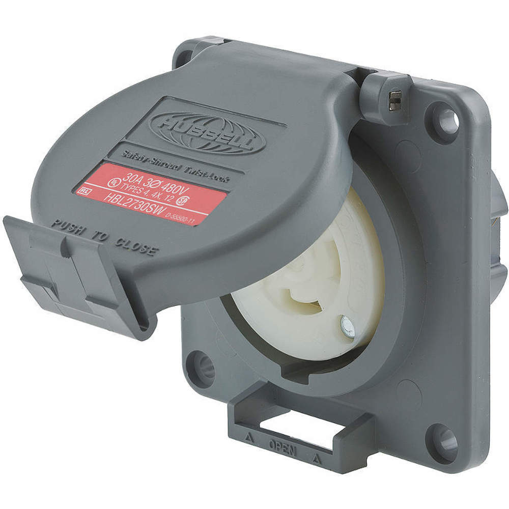 HUBBELL WIRING DEVICE-KELLEMS HBL2730SW Watertight Receptacle, 30A, 3-Phase, Delta, 480VAC, 3-Pole, 4-Wire Grounding