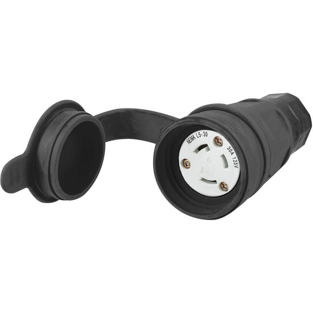 HUBBELL WIRING DEVICE-KELLEMS HBL29W47BK Connector, 30A, 125VAC, 2 Pole, 3 Wire, Thermoplastic Elastomer, Black
