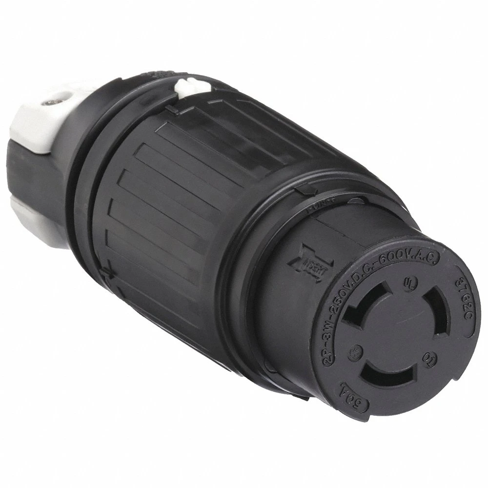 HUBBELL WIRING DEVICE-KELLEMS HBL3762C Female Connector, 50A, 250VDC/600VAC, 2-Pole, 3-Wire Grounding