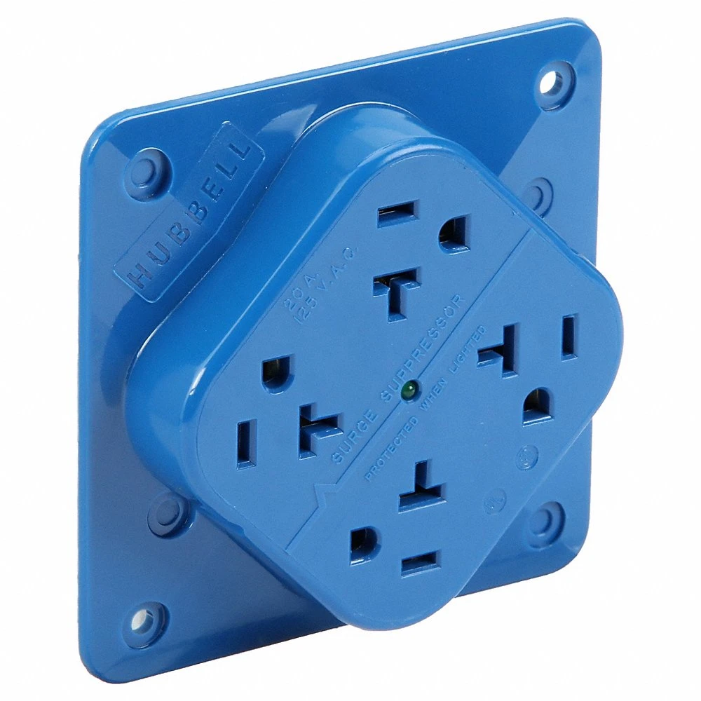 HUBBELL WIRING DEVICE-KELLEMS HBL420S Straight Blade Receptacle, 20A 125V, 2-P 3-W Grounding, 5-20R, Blue