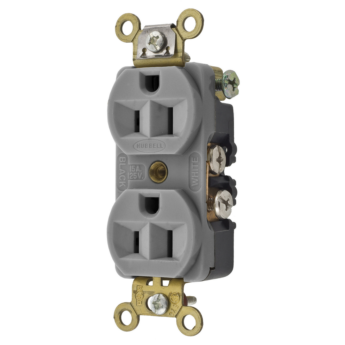 HUBBELL WIRING DEVICE-KELLEMS HBL5242GY Straight Receptacle, Duplex, 15A 125V, Gray