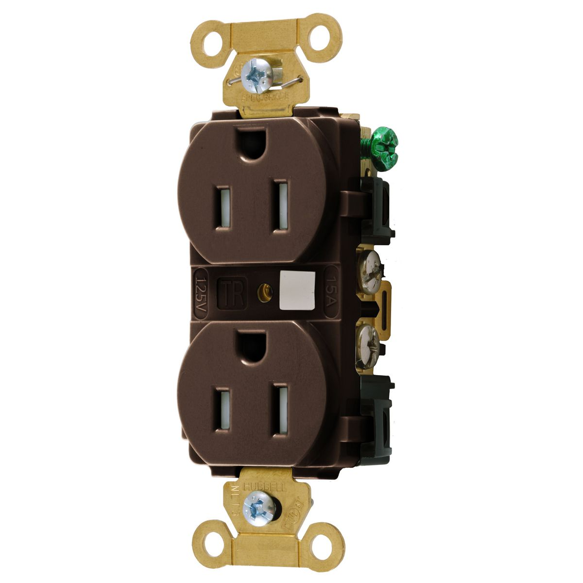 HUBBELL WIRING DEVICE-KELLEMS HBL5262TR Straight Receptacle, Duplex, 15A 125V, Brown