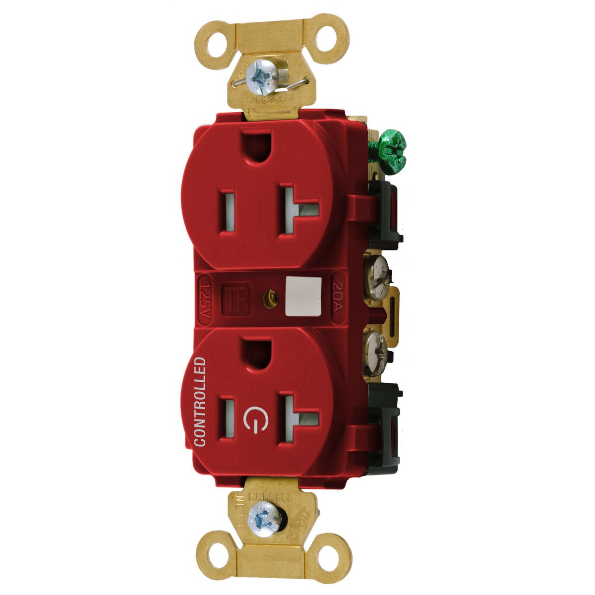 HUBBELL WIRING DEVICE-KELLEMS HBL5362C1RTR Straight Receptacle, 20A 125V, 2P - 3W, Red