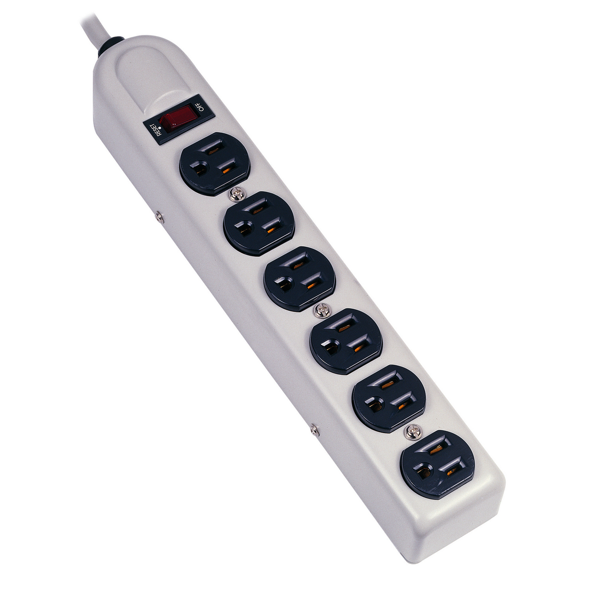 HUBBELL WIRING DEVICE-KELLEMS HBL6MPS15 Plug Strip, 6 RCPT, Metal, 15 ft
