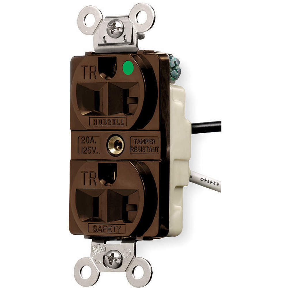 HUBBELL WIRING DEVICE-KELLEMS HBL8200SGA Receptacle, Duplex, Tamper Resistant, 2-Pole, 3-Wire Grounding, 15A, 125V, Brown