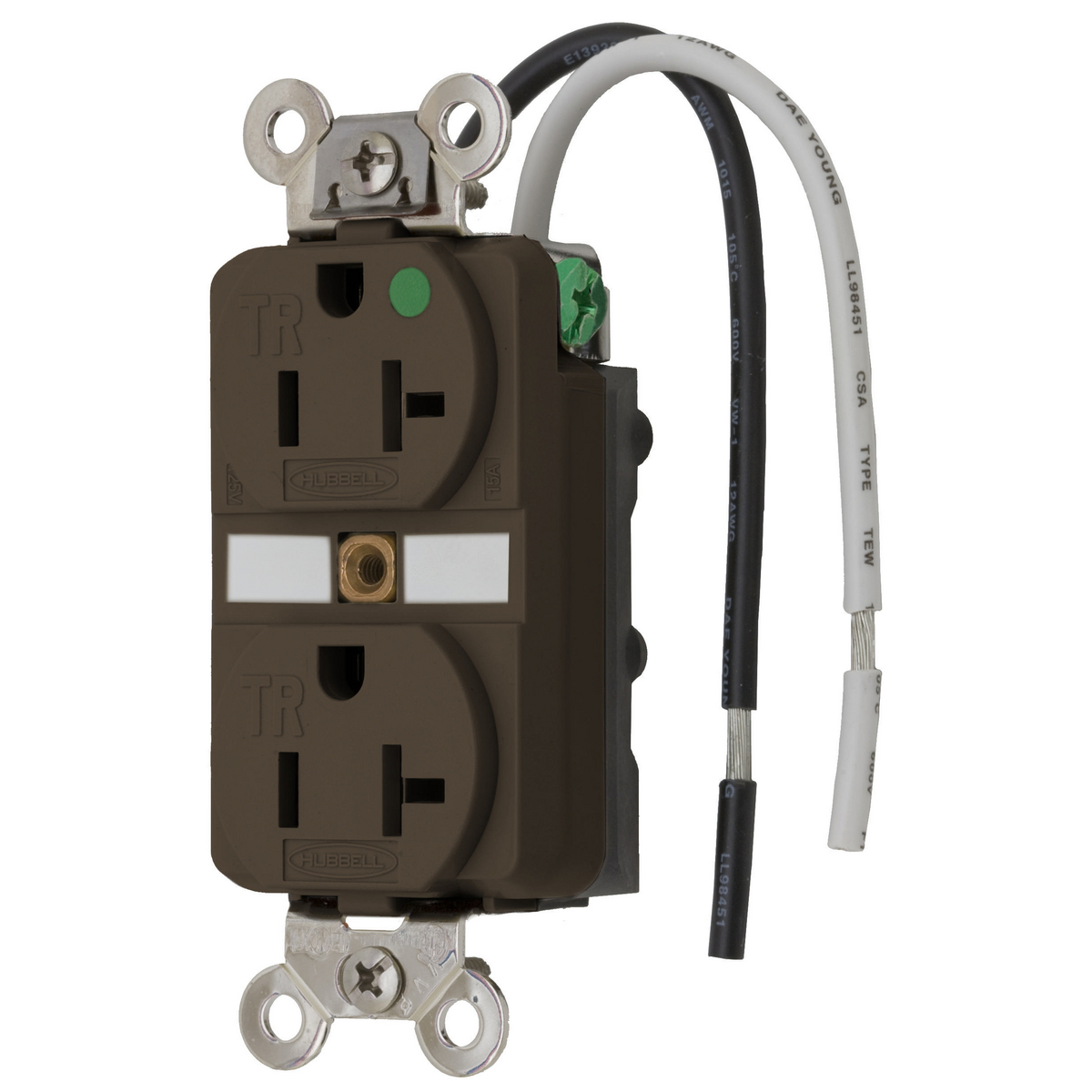 HUBBELL WIRING DEVICE-KELLEMS HBL8300SGA Receptacle, Duplex, 2-Pole, 3-Wire Grounding, 20A, 125V, Brown