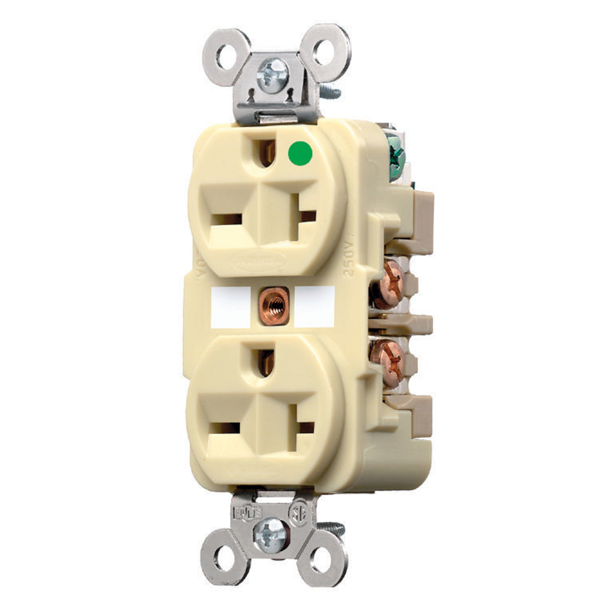 HUBBELL WIRING DEVICE-KELLEMS HBL8400I Receptacle, Duplex, 2-Pole, 3-Wire Grounding, 20A, 250V, Ivory