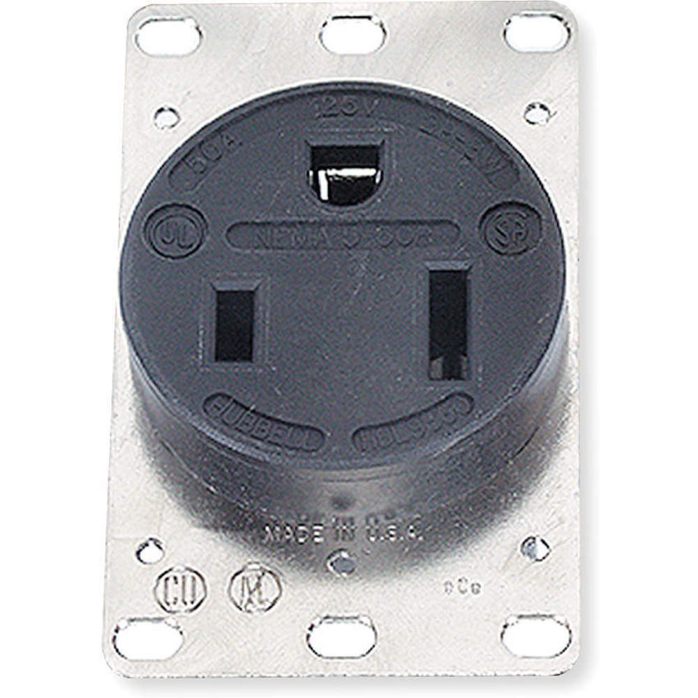 HUBBELL WIRING DEVICE-KELLEMS HBL9360 Straight Blade Receptacle, 2-P 3-W Grounding, 50A 125V, 5-50R, Black