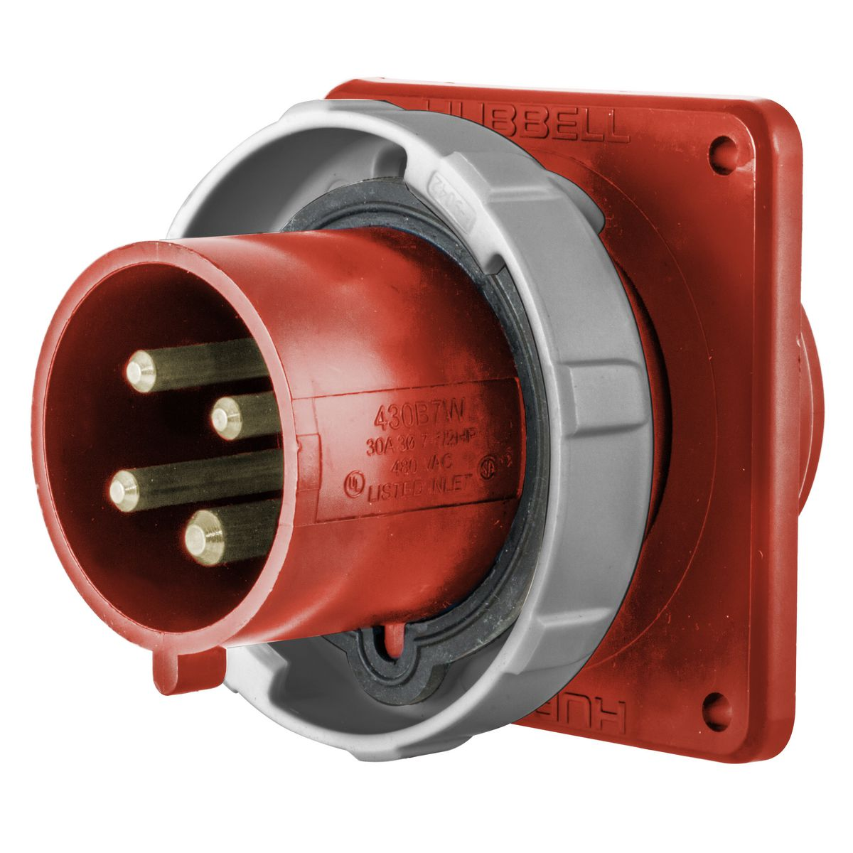 HUBBELL WIRING DEVICE-KELLEMS HBLS460B6W Iec Pin And Sleeve Inlet, 60 - 63 A, 380 - 415 VAC, 3 Pole