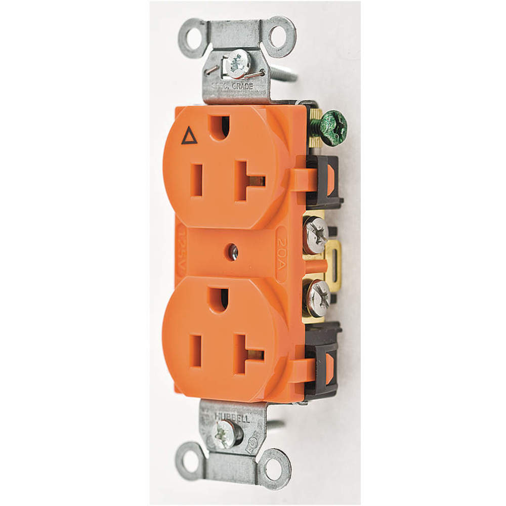 HUBBELL WIRING DEVICE-KELLEMS IG20CR Straight Receptacle, Duplex, 20A 125V, Side Wired, Orange