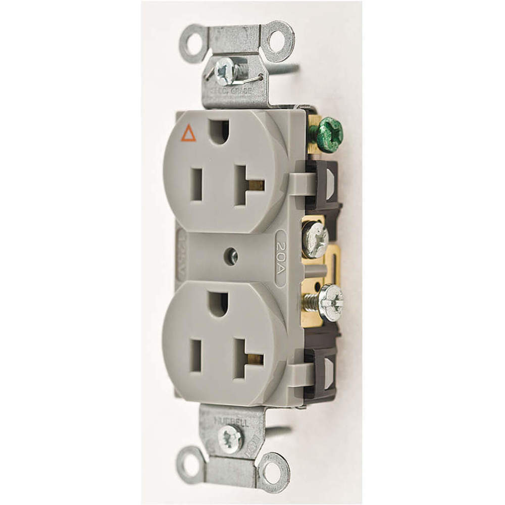 HUBBELL WIRING DEVICE-KELLEMS IG20CRGRY Straight Receptacle, Duplex, 20A 125V, Side Wired, Gray