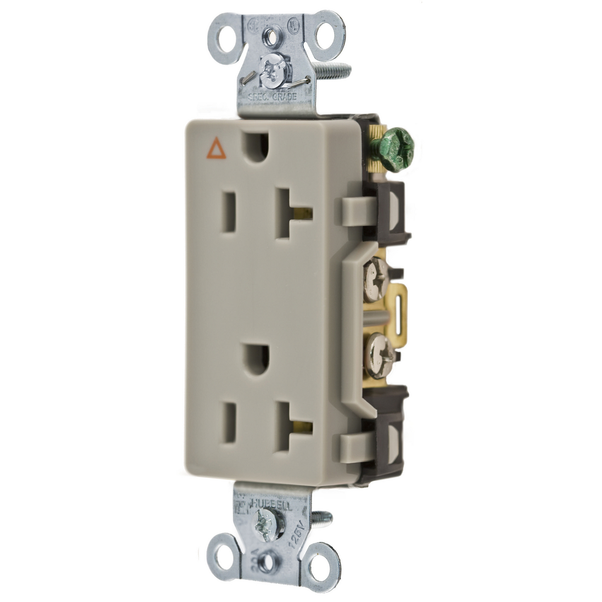 HUBBELL WIRING DEVICE-KELLEMS IG20DRGRY Straight Receptacle, Duplex, Smooth Face, 20A 125V, Back And Side Wired, Gray