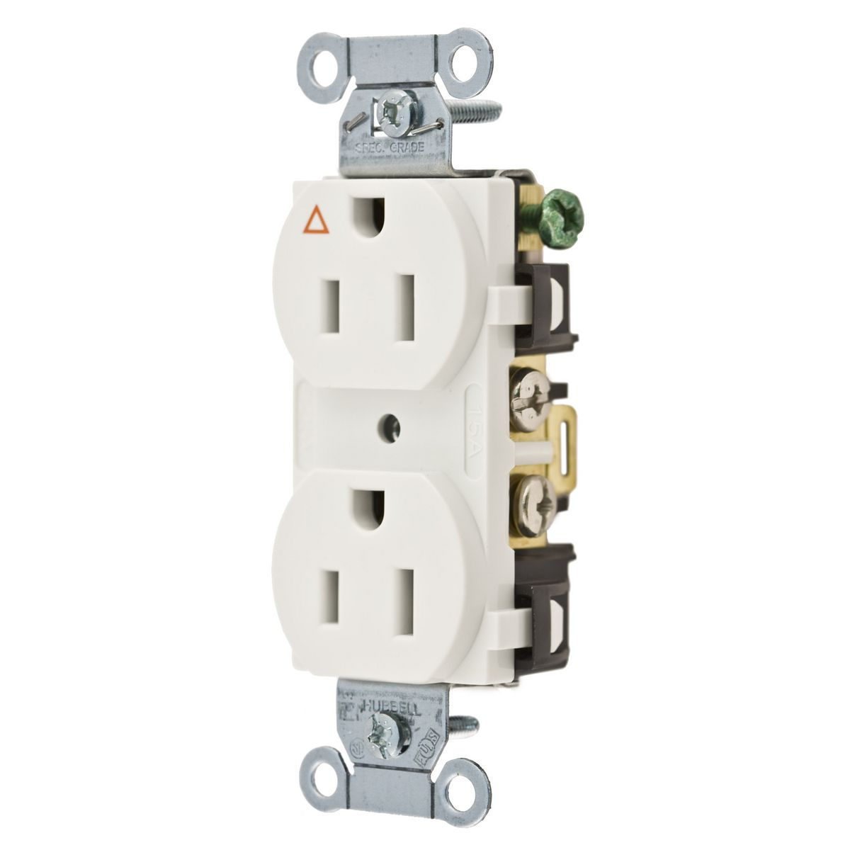 HUBBELL WIRING DEVICE-KELLEMS IG5252W Straight Receptacle, Duplex, Isolated Ground, 15A 125V, White