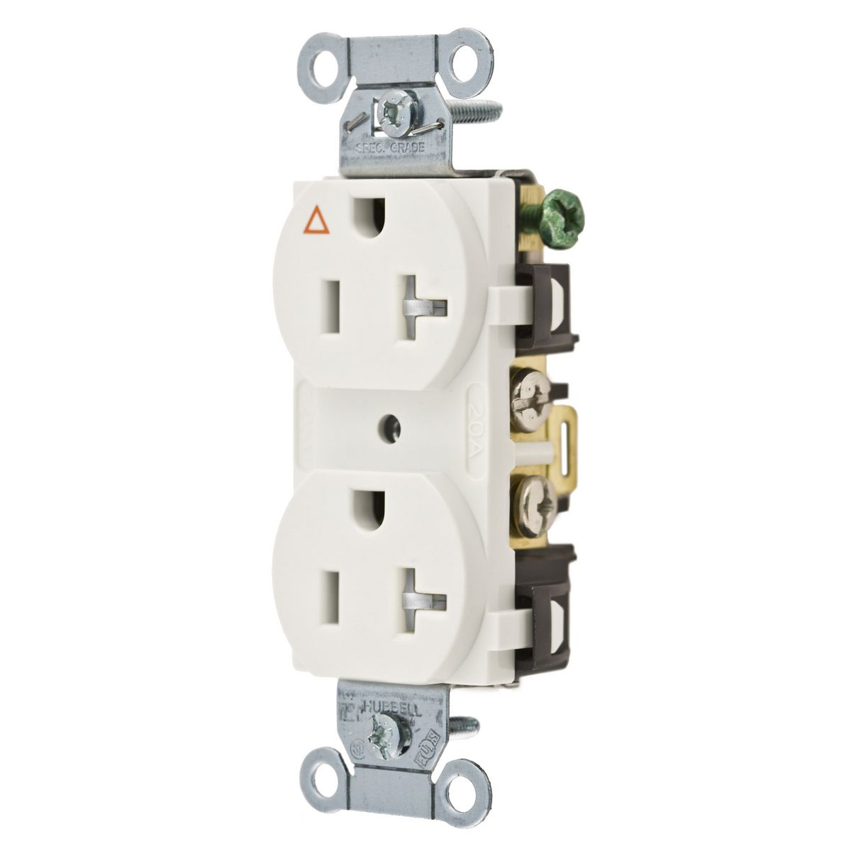 HUBBELL WIRING DEVICE-KELLEMS IG5352WTR Straight Receptacle, Duplex, 20A 125V, Back And Side Wired, White
