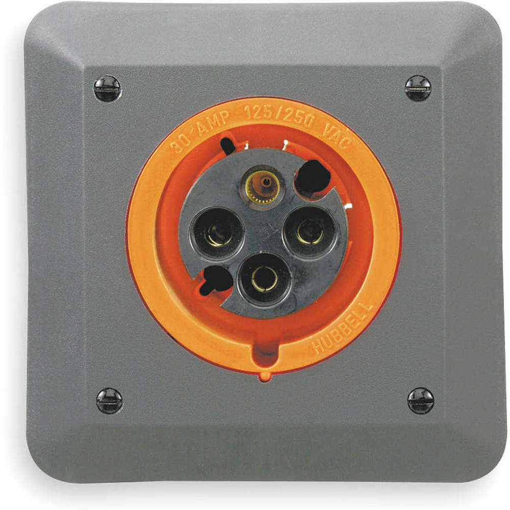 HUBBELL WIRING DEVICE-KELLEMS L430R12 Iec Pin And Sleeve Receptacle, Female, 30 A, 125 - 250 V, 3 Pole, Orange