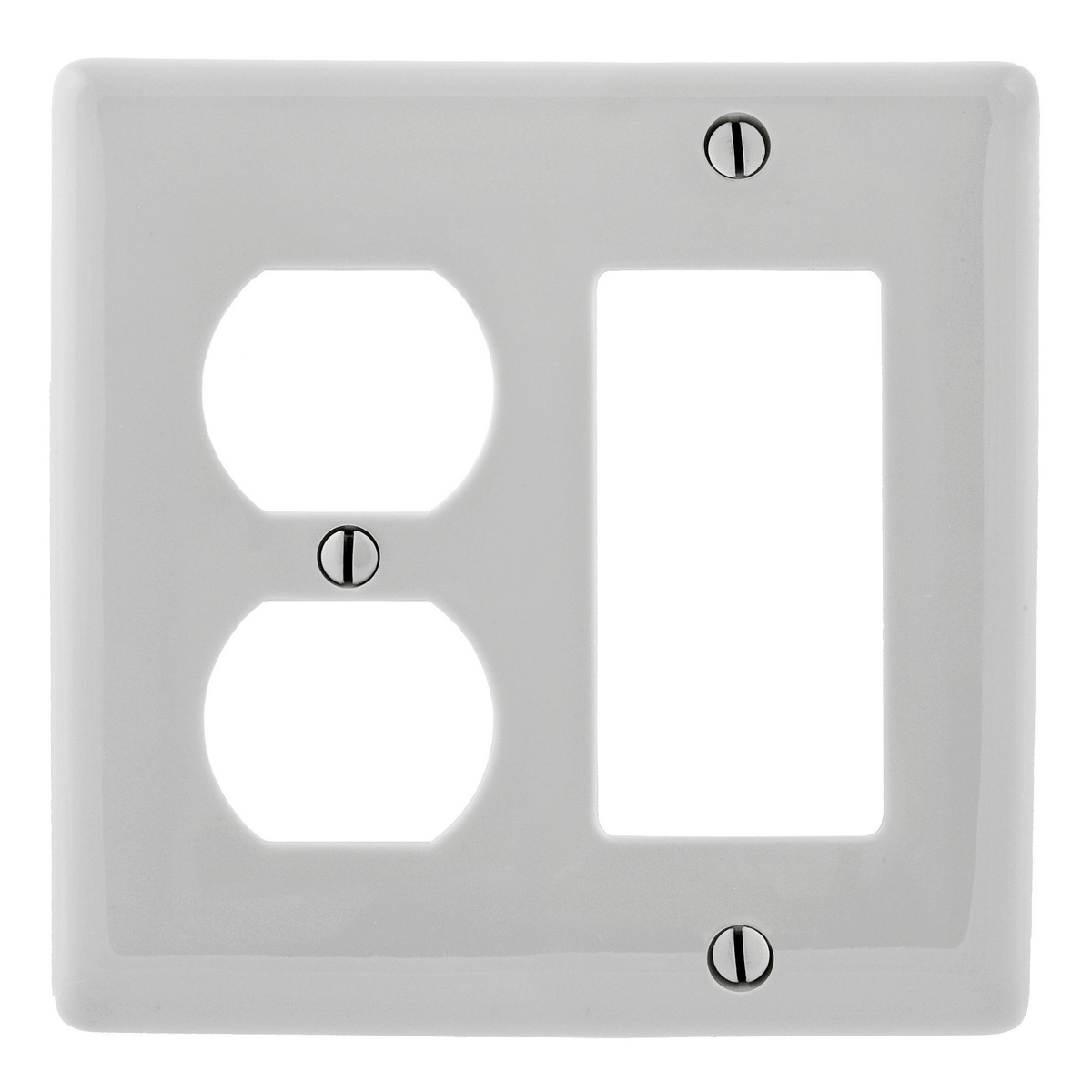 HUBBELL WIRING DEVICE-KELLEMS NP826OW Wallplates, Nylon, 2-Gang, 1 Duplex, 1 Decorator, White
