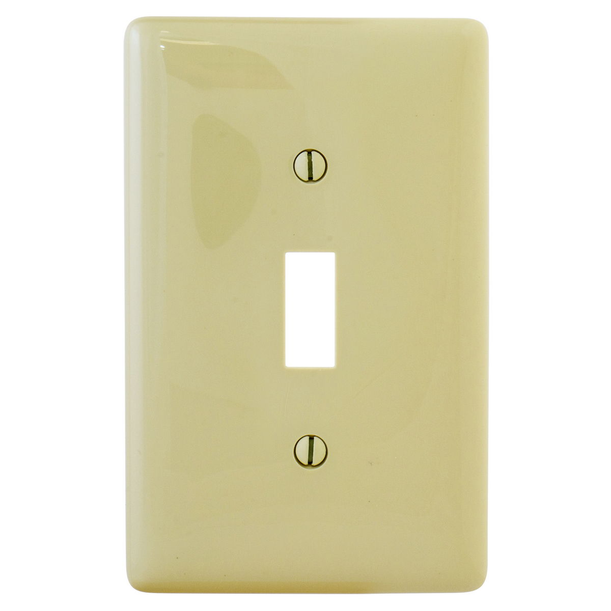 HUBBELL WIRING DEVICE-KELLEMS NPJJ1I Wallplates and Box Covers, Wallplates, Nylon, 1-Gang, Jumbo, Toggle Opening, Ivory