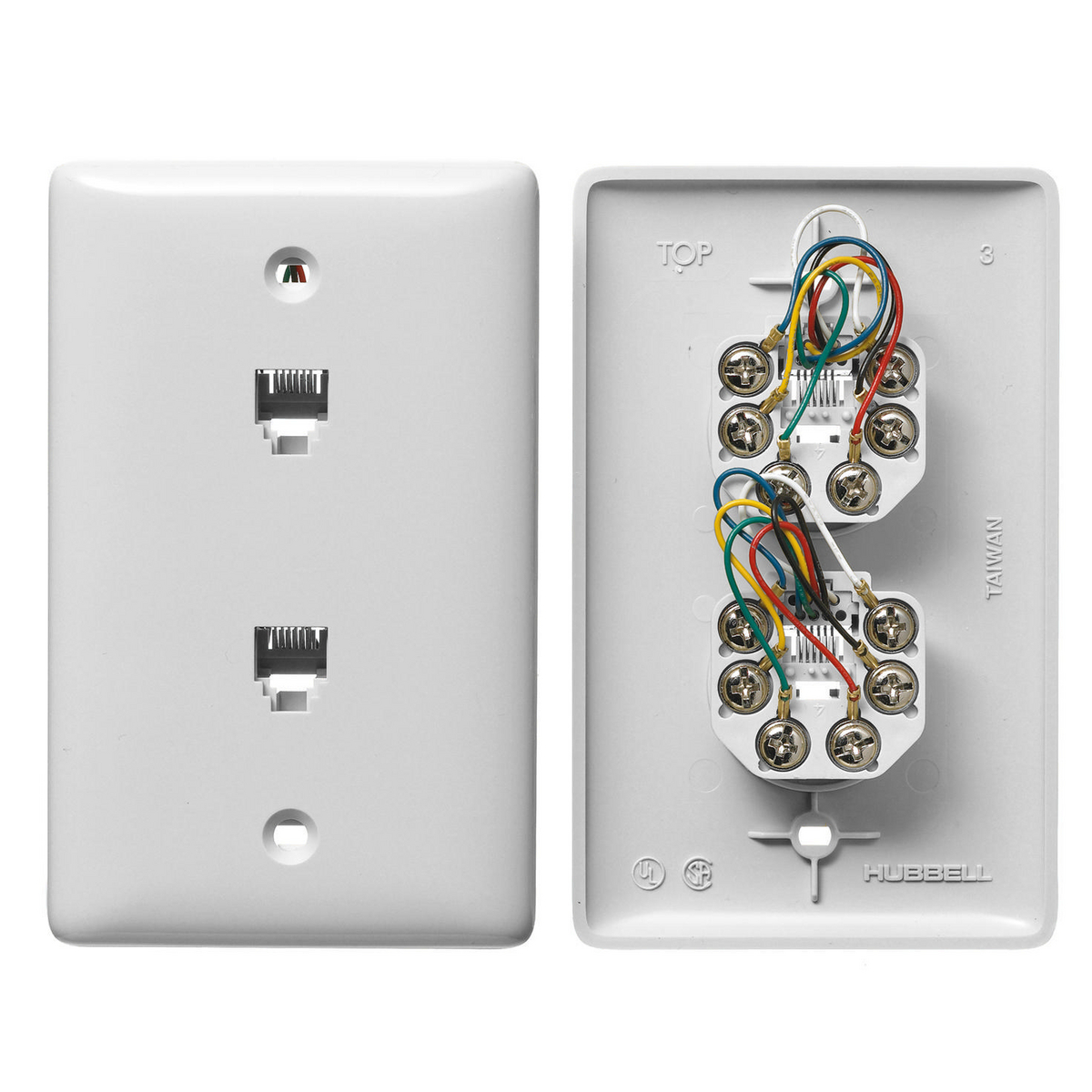HUBBELL WIRING DEVICE-KELLEMS NS744W Plate, 1-Gang, 6-Position 6-Conductor, Screw Terminal, White